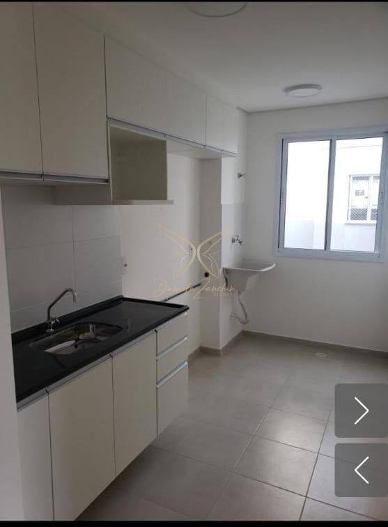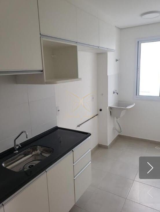 Apartamento com 2 quartos, banheiro com gabinete, cozinha com armários planejados, sala de estar e jantar, área de serviço com armário e 2 vagas de garagem cobertas sob a torre. Localizado no 7º andar (último), oferece uma vista livre para a rodovia.