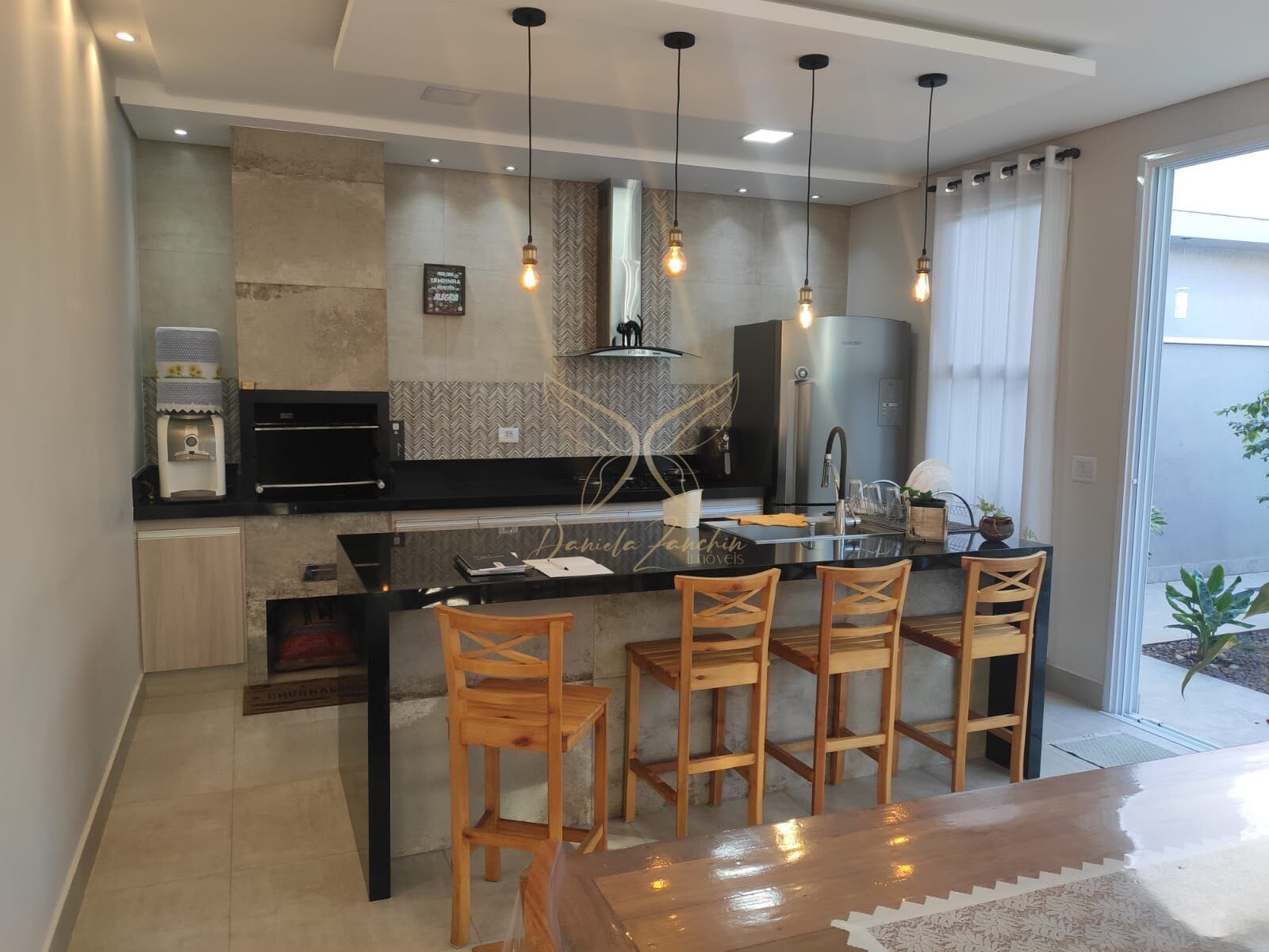 A casa possui um terreno de 300m² e uma área construída de 209m², oferecendo conforto e praticidade. Com quatro quartos, incluindo uma suíte, e três banheiros, o imóvel é perfeito para famílias. A sala de estar e jantar é ampla e acolhedora, enquanto a cozinha americana é equipada com armários planejados, cooktop e exaustor. O espaço gourmet é separado, ideal para receber amigos e familiares. Além disso, a casa possui um lavabo, despensa, lavanderia e um quarto com banheiro nos fundos.